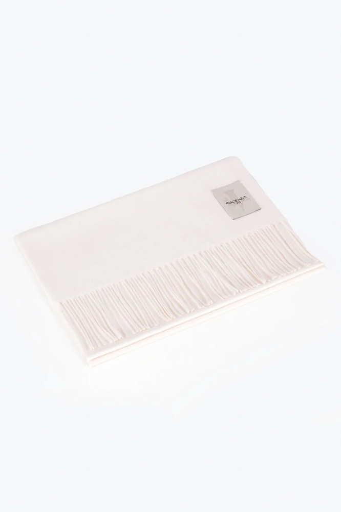 Κασκόλ από εκλεκτό συνδυασμό δύο νημάτων πολυτελείας, 51%μετάξι και 49% καθαρό κασμίρ, για ζεστασιά με διακριτική λάμψη.